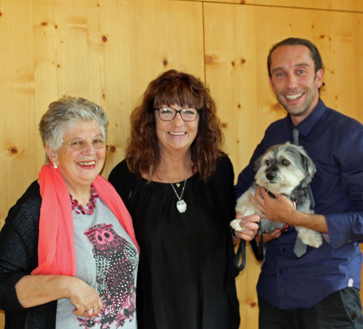 Ils protagonists da l’occurrenza: Da schnestra Emerita Polin-De Giovanni, Carla Menegola-Lüthi e Lorenzo Polin cun Pipo (fotografia: Martina Shuler-Fluor).