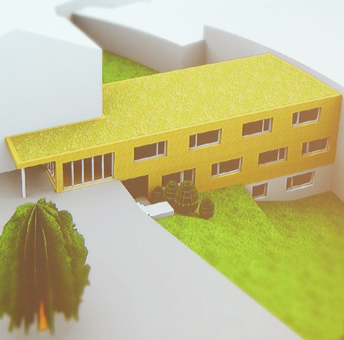 Il model muossa l’entrada da la Chasa Puntota chi dvantarà plü spaziusa e la plazza davant chasa servirà als abitants per far ün pêr pass our il liber. fotografia: Chasper Cadonau