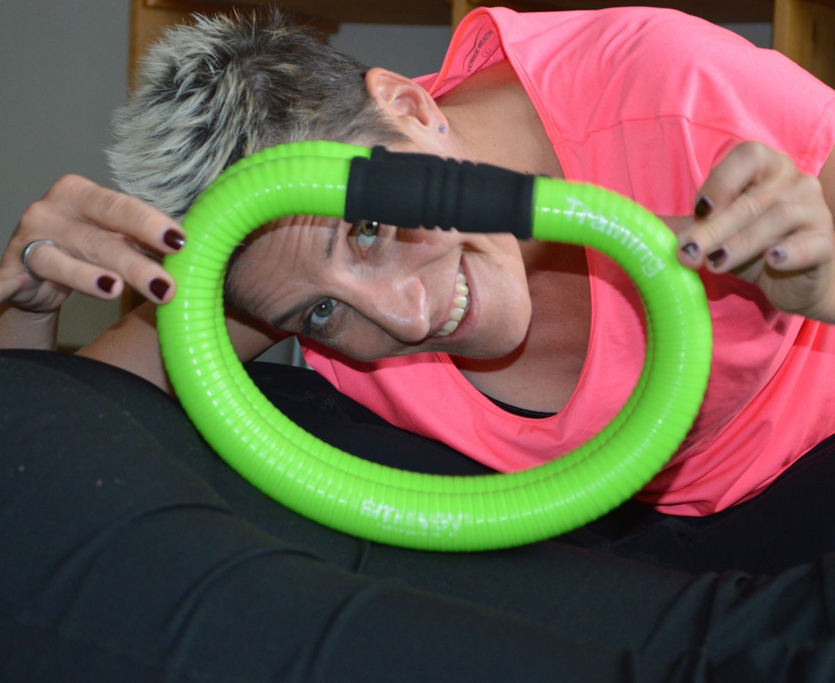 Manuela Zen da Sta. Maria in Val Müstair preschainta exercizis cul «smovey» (fotografia: mad).