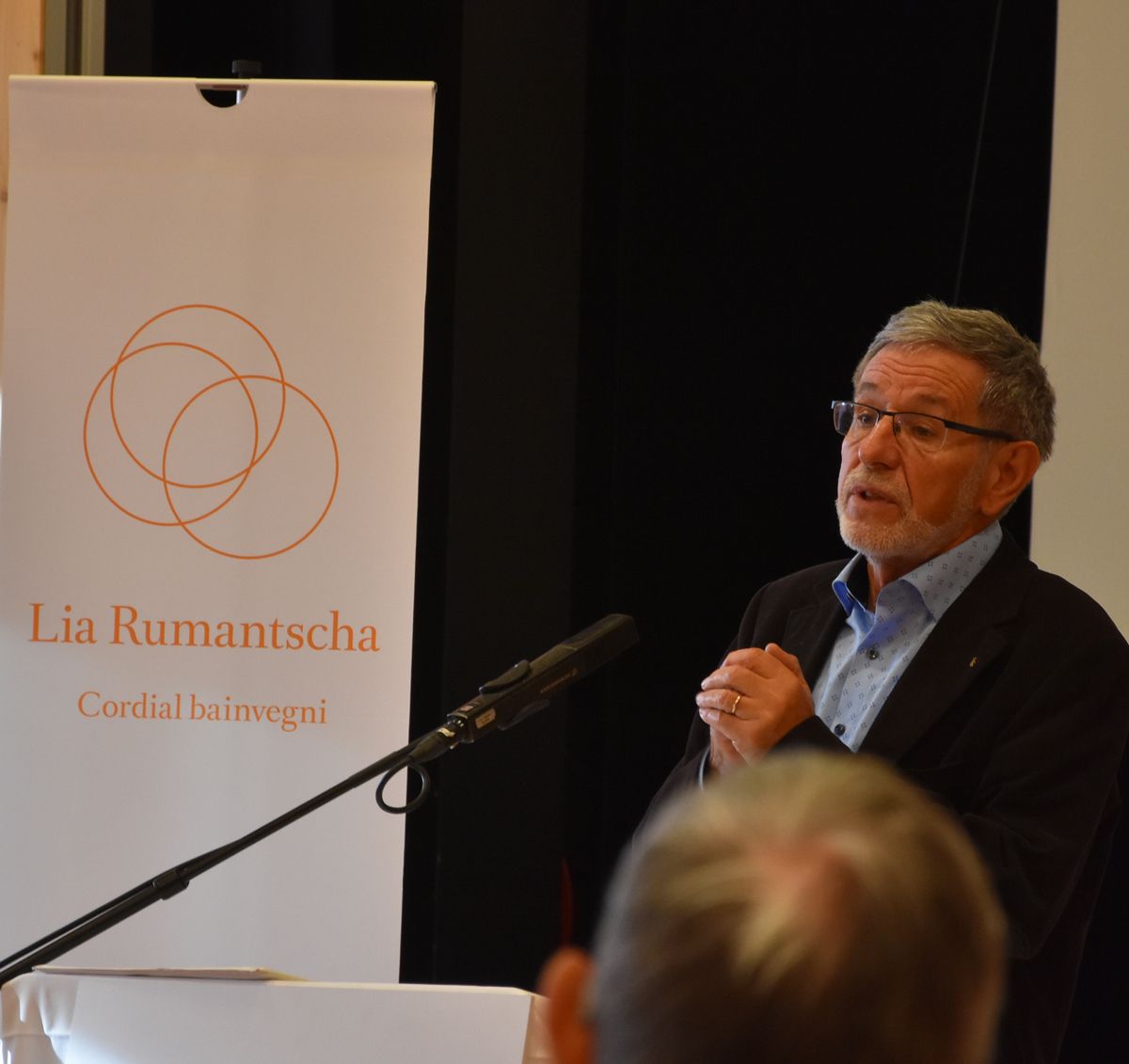 il president da la Lia Rumantscha Johannes Flury ha manà tras las tractandas statutarias da la radunanza da delegats da la Lia Rumantscha (fotografia: Nicolo Bass).