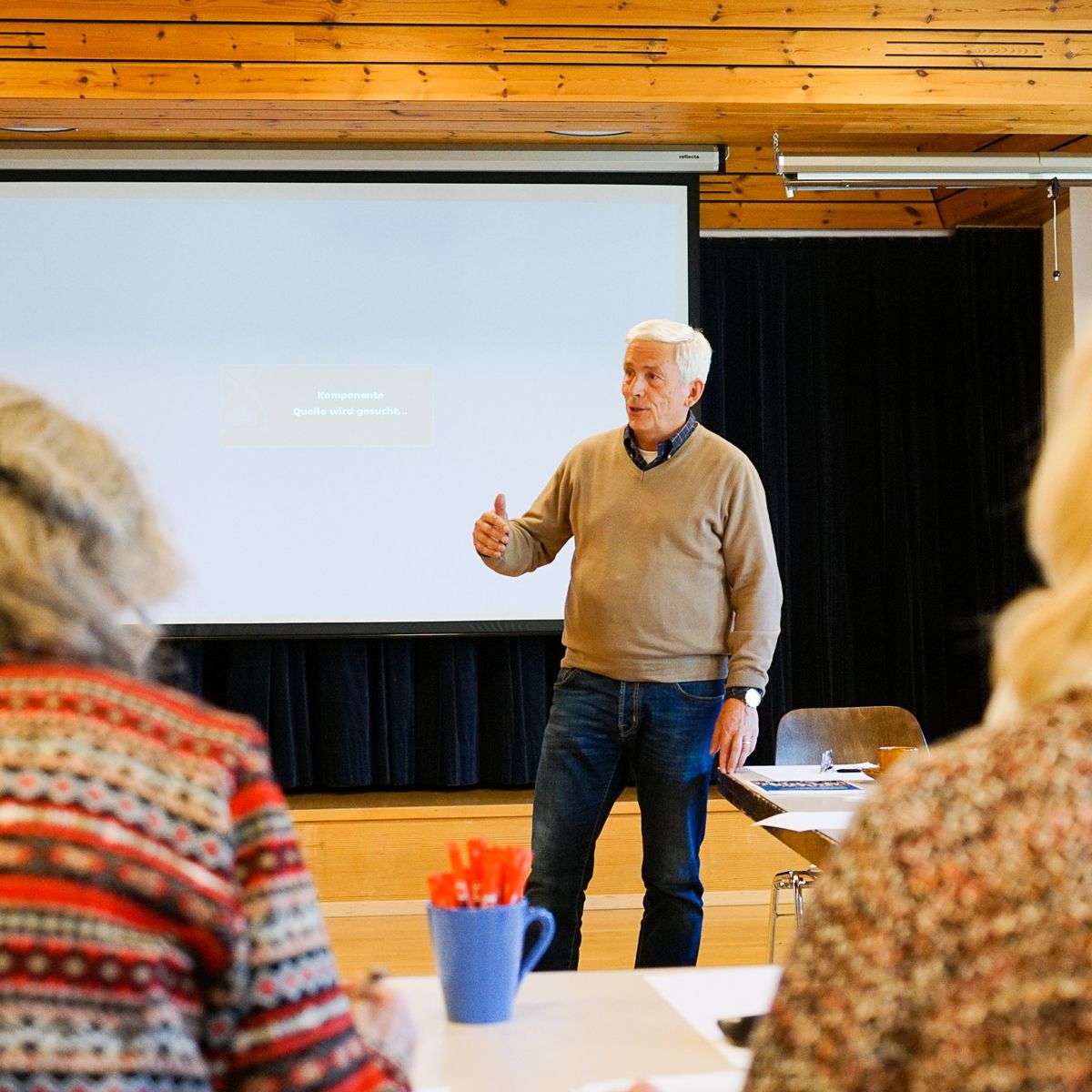 InnHub-Projektleiter Gerhard Stäuble anlässlich des ersten Workshops in La Punt Chamues-ch. Foto: Jon Duschletta