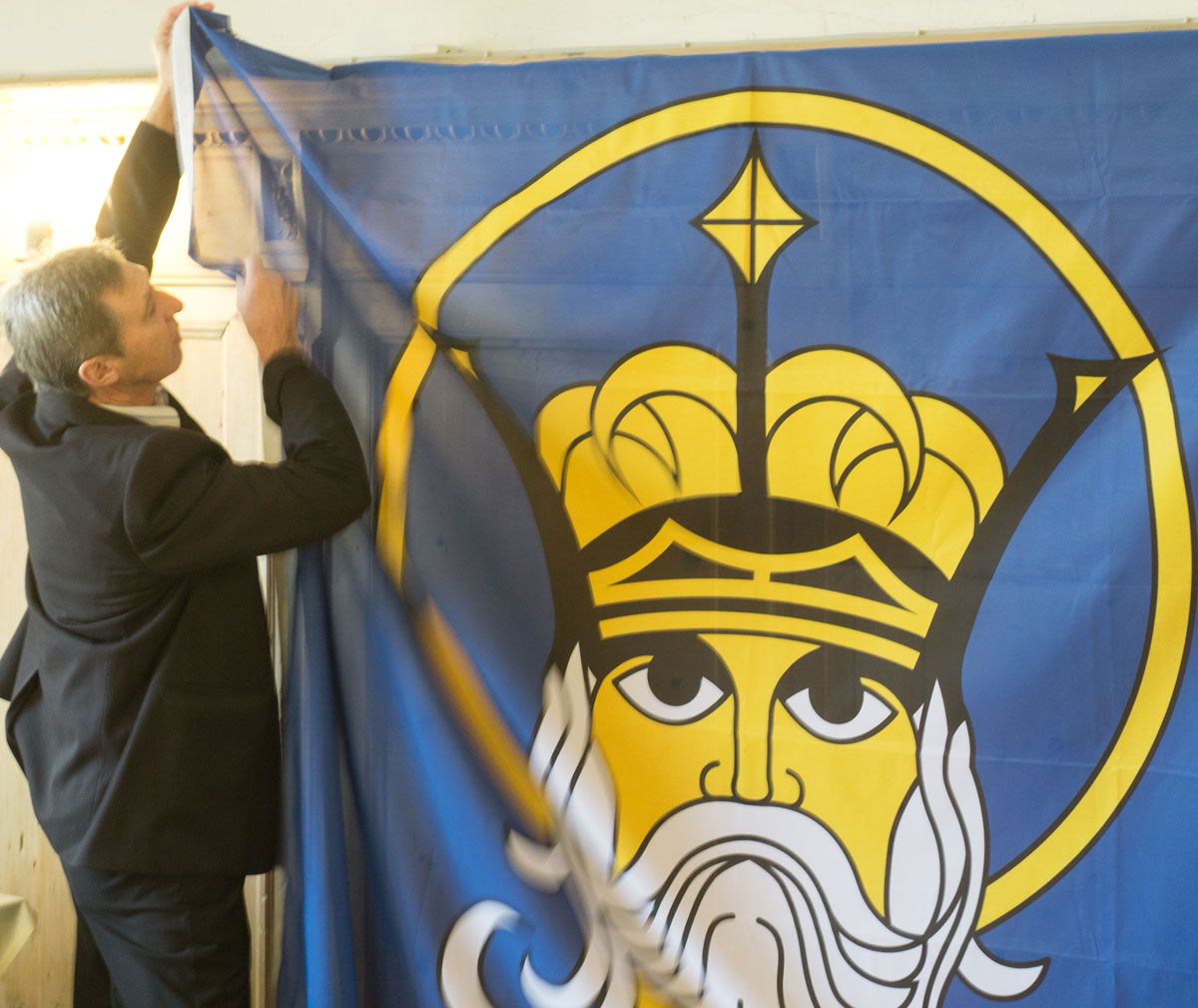 Kreispräsident Gian Duri Ratti entfernt die Kreisfahne. Foto: Reto Stifel