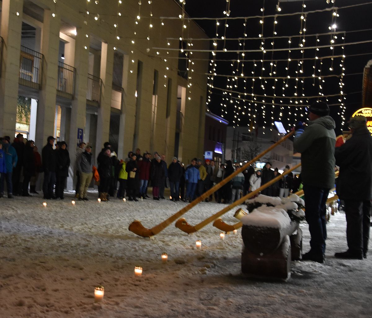 Glümeras dals 28 december lung il Stradun da Scuol (fotografia: Nicolo Bass).