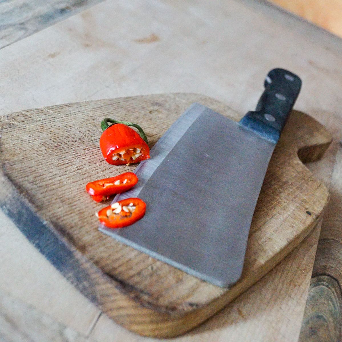 Werte Damen, weshalb müht ihr euch in der Küche mit dem unhandlichen Schnitzer ab? Weshalb macht ihr es nicht den Männern nach und schneidet Gemüse, Fleisch oder Kräuter mit einem grossen, höllisch scharfen Kochmesser? Antworten gibts auch im PS keine.