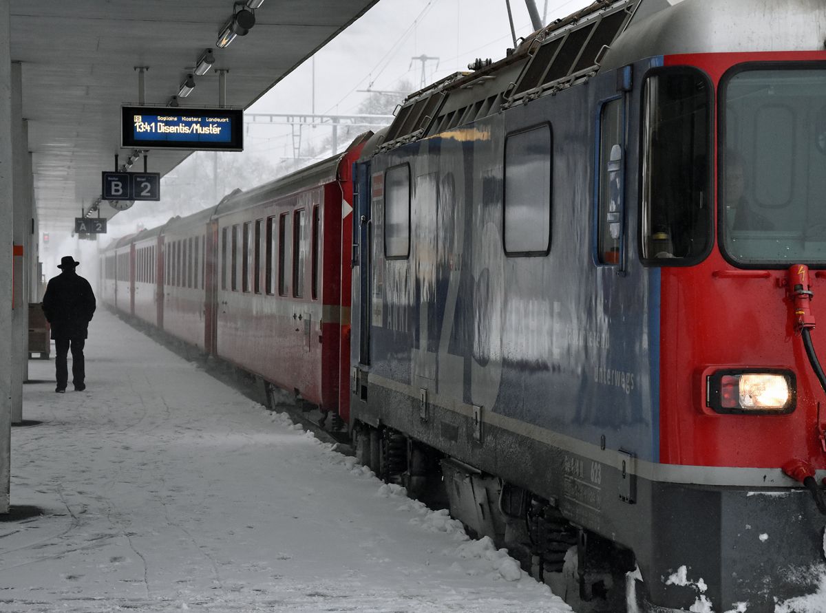 Ils turistikers racumandan da viagiar dürant il WEF cul tren per evitar impedimaints sülla via dal Partens (fotografia: Nicolo Bass).