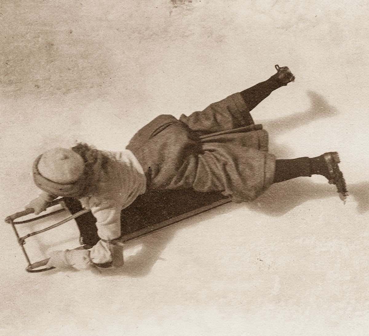 Als die Ladys noch zugelassen waren: Eine Frau mit Rock steuert den Cresta Run hinunter. (Foto: Archiv Cresta Club)