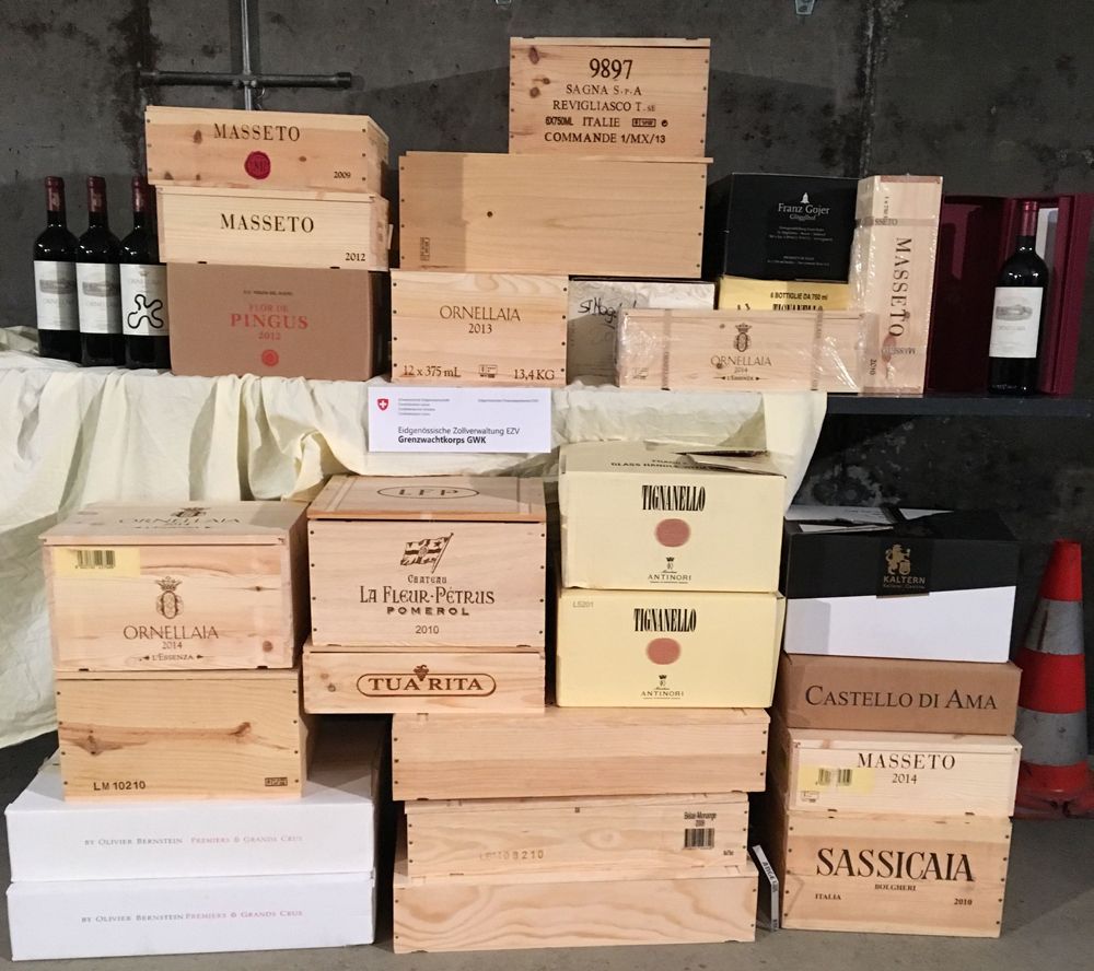 Mitte Januar haben Mitarbeitende des Grenzwachtkorps beim Autoverlad Vereina im Kanton Graubünden 102 Liter geschmuggelten Wein in einem Fahrzeug entdeckt. Das Fahrzeug war zuvor über den Grenzübergang Martina eingereist.