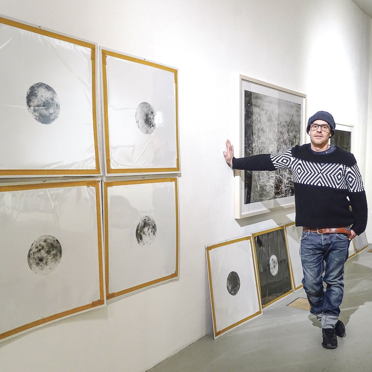 Daniel Meuli in seiner St. Moritzer Galerie. Hier zeigt er aktuell seine Schneeball-Porträts. Foto: Carolin A. Geist