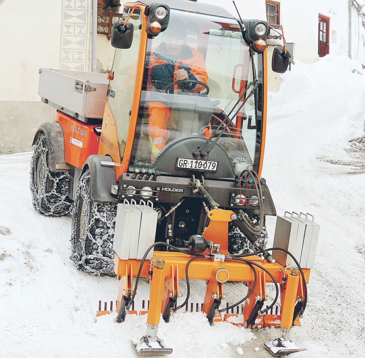 Cun agüd dals daints da maschinas sgrattan sü ils lavuraints cumünals il glatsch per evitar cha la glieud sglischa e’s fetscha mal. (fotografia: Flurin Andry)