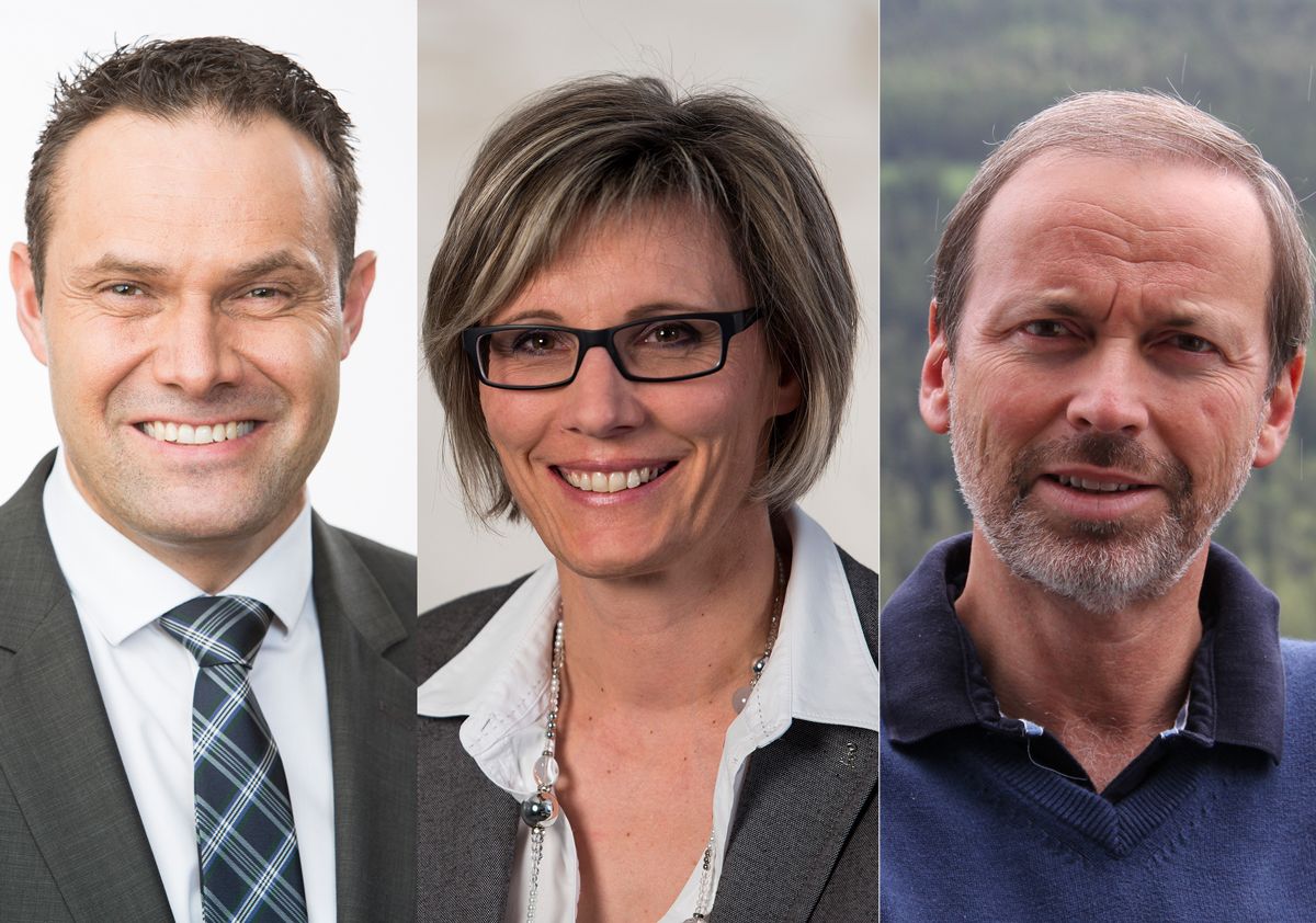 Domenic Toutsch da Zernez (PPS, Sur Tasna), Leta Steck-Rauch da Strada (PLD, Ramosch) e Phlipp Gunzinger da Scuol (PLD, Suot Tasna) as retiran dal Grond cussagl (fotografias: mad).