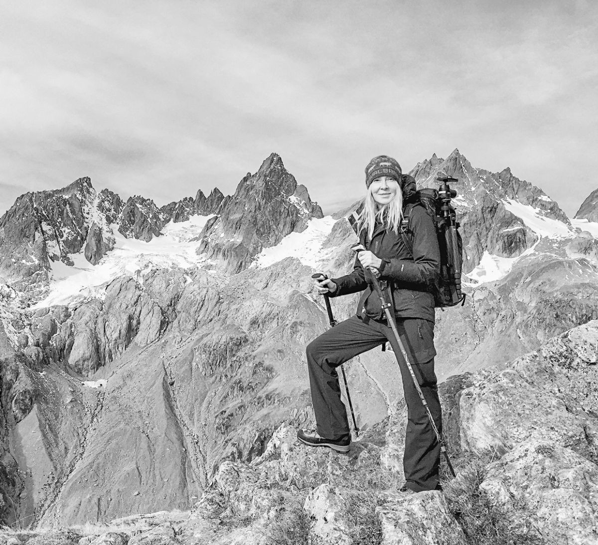Links: Biancograt Light and Shadows, 2017, rechts Dawna Mueller an der Sustlihütte, 2017. (Fotos: z. Vfg.)
