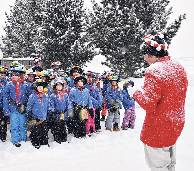 Der Chalandamarz in Bever wurde dieses Jahr durch eine Schulklasse aus Flawil (SG) verstärkt. Diese lernten dafür extra romanische Lieder auswendig und bastelten selbst bunte Papierblumen. Mehr nachzulesen in der EP vom 3. März