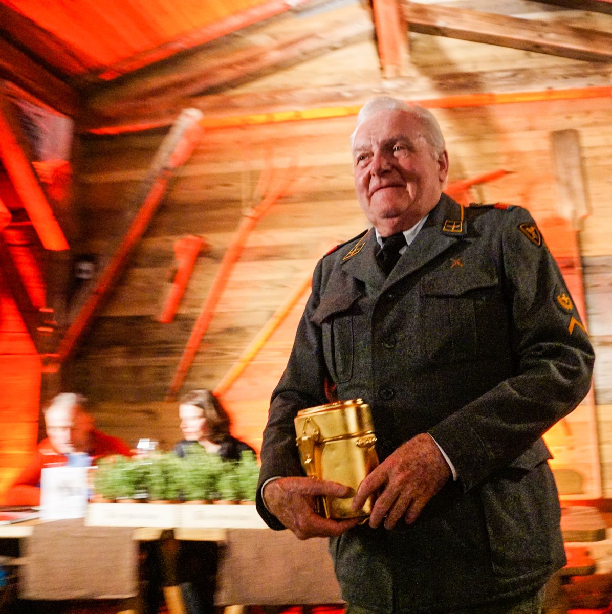 Der ehemalige Militärküchenchef Felix Schlatter erzählte an der Table d'hôte Anekdoten aus seiner Aktivzeit. Foto: Jon Duschletta