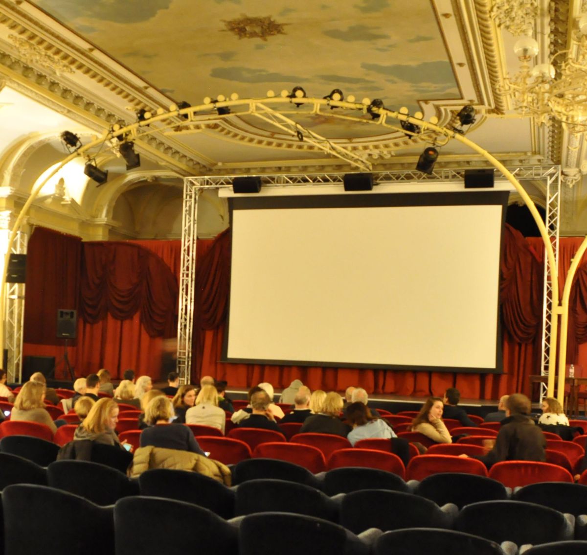 Provisorischer Kinobetrieb im Festsaal des Hotels Reine Victoria