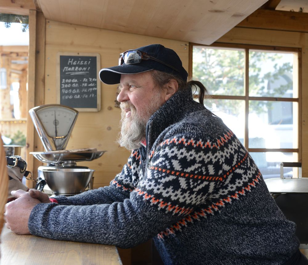 Rolf Brunner führte vor Jahren die Snowboardmarke Burton in der Schweiz ein. Diesen Winter verkaufte er in der Fussgängerzone von St. Moritz Marronis. Mehr zu diesem Menschen, der auch einige Jahre Cowboy in Amerika war, in der EP vom 8. März