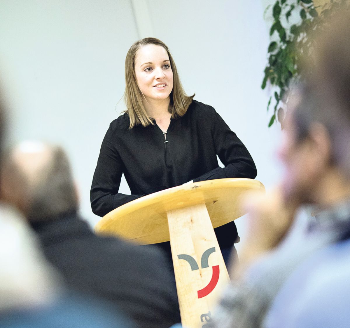 Yvonne Schuler da la Turissem Engiadina Scuol Samignun Val Müstair SA ha preschantà a Scuol il proget per reposiziunar l’aua minerala illa regiun. (fotografia: Dominik Täuber)