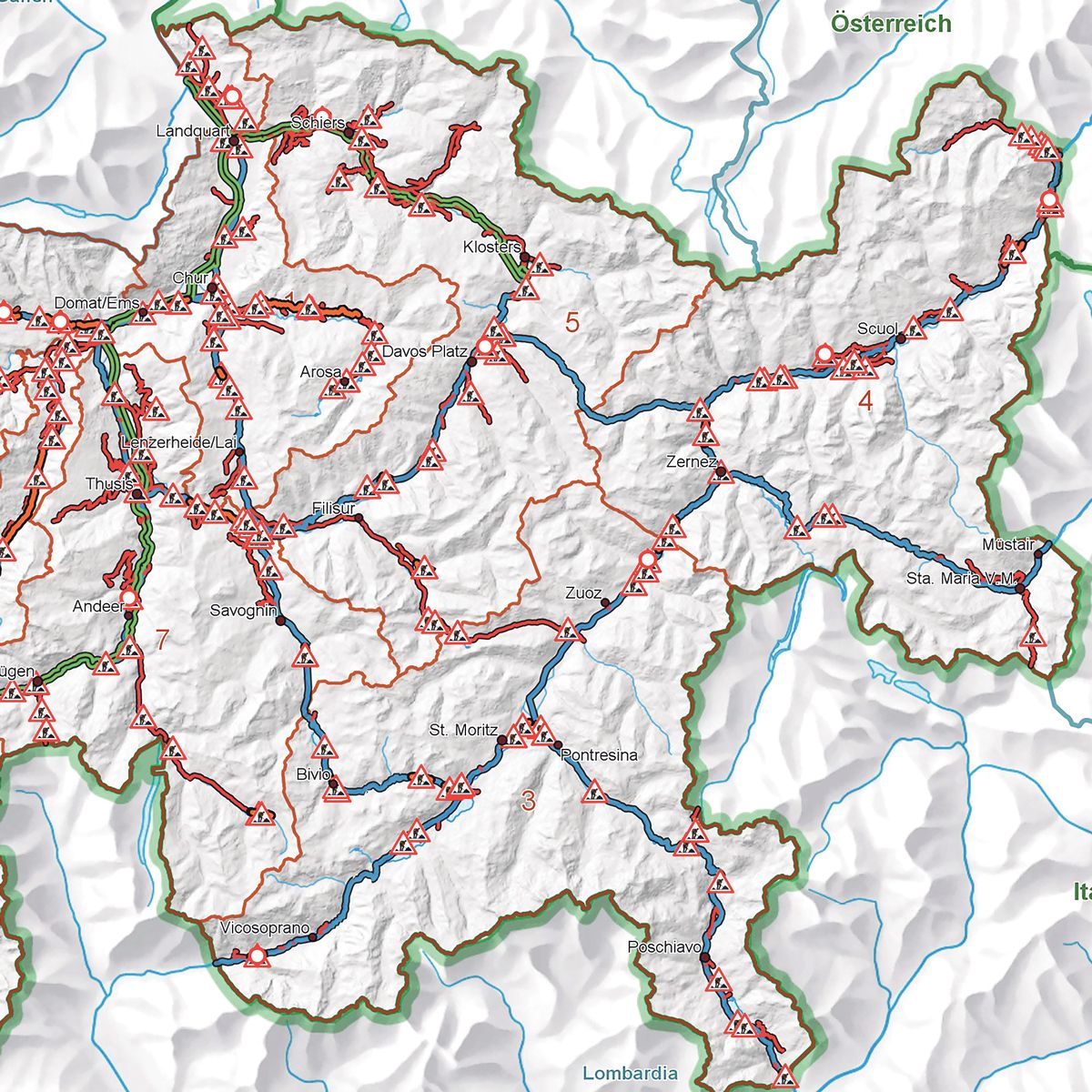Übersicht über die Strassen-Baustellen 2018. Quelle: Tiefbauamt Graubünden TBA