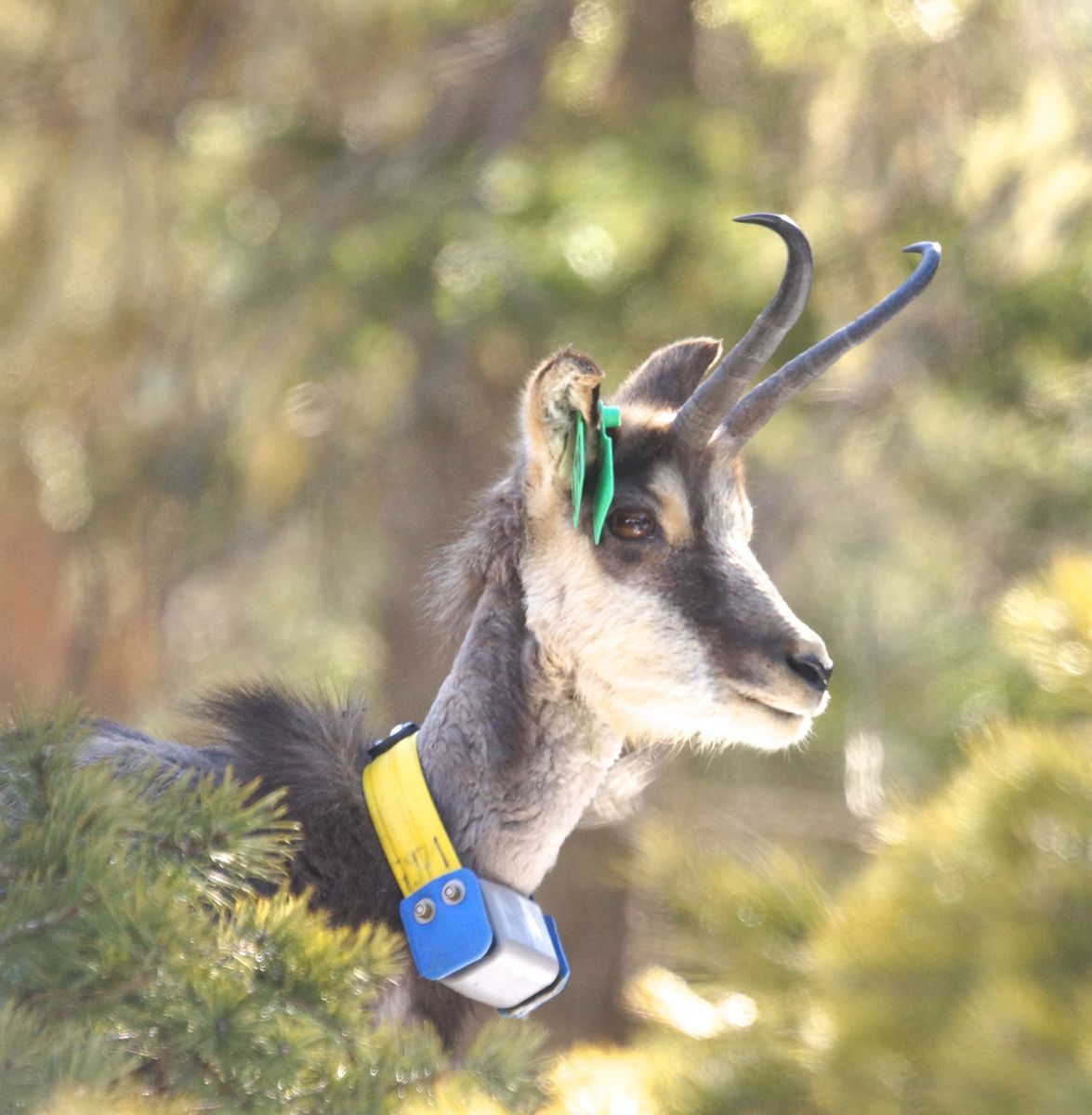 Ün chamuotsch marcà da perits dal Parc Naziunal Svizzer sül Pass dal Fuorn (fotografia: Marco Walther).