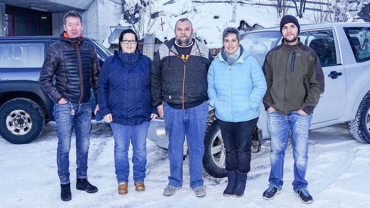 Da schnestra: Andri Margadant, Anassia Casanova-Fedi, Gian Reto, Seraina e Mauro Fedi (fotografia: Jon Duschletta).