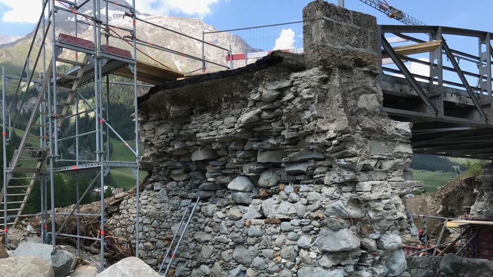 Oberhalb des Dorfes Splügen wurde die Brücke, welche über den Hüscherabach führt, stark beschädigt und für den gesamten Verkehr unpassierbar. Beide Brückenwiderlager wurden unterspült sowie auf der einen ...