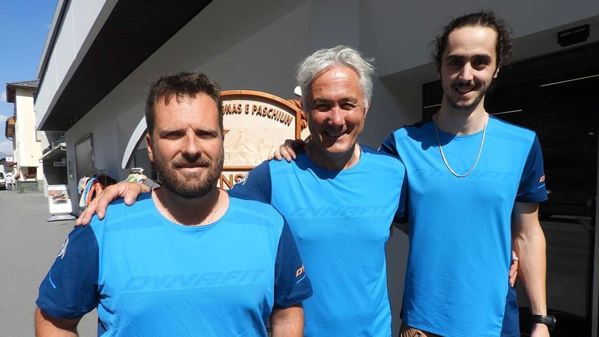 Marco Loher (a schnestra) e Jon Fanzun junior (a dretta) accumpognan a Jon Fanzun pro seis proget persunal. (fotografia: Annatina Filli)