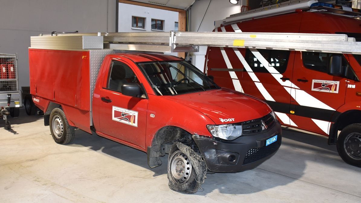 Das beschädigte Fahrzeug der Feuerwehr in Ramosch. Foto: Kantonspolizei