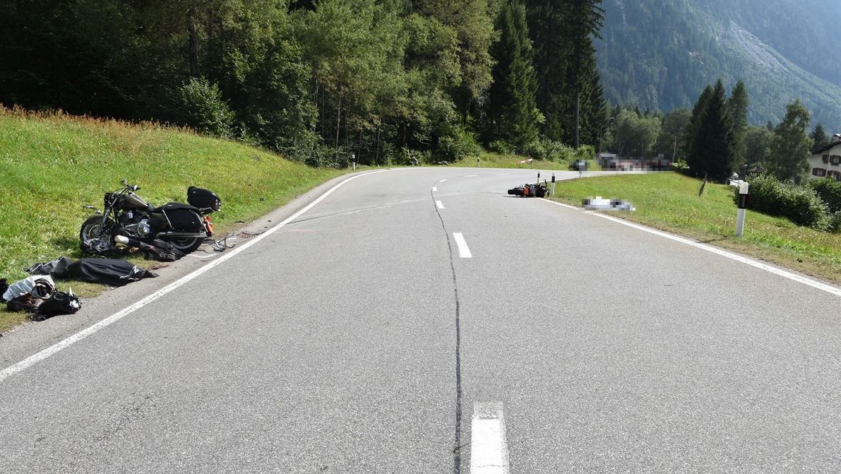 Eine waadtländische Motorradgruppe mit insgesamt 35 Motorrädern fuhr am Samstag um 14.32 Uhr von Vicosoprano kommend über die H3 Malojastrasse in Richtung Casaccia. Zur gleichen Zeit fuhr ein 44-jähriger Motorradlenker aus dem Tessin alleine von Casaccia kommend talabwärts. Bei der Örtlichkeit Pranzaira kam es aus noch ungeklärten Gründen zu einer seitlich-frontalen Kollision zwischen zwei Motorrädern. Beim Zusammenstoss verletzten sich die beiden Lenker so schwer, dass sie auf der Unfallstelle verstarben. Dies trotz Reanimation eines Ambulanzteams der Rettung Centro Sanitario Bregaglia sowie durch einen Rega-Notarzt. Die Soziusfahrerin des 60-jährigen Lenkers wurde mit schweren Verletzungen mit der Rega-Crew ins Kantonsspital Chur überflogen. Zur Betreuung der Motorradgruppe wurde das Care-Team Grischun beigezogen. (kapo)