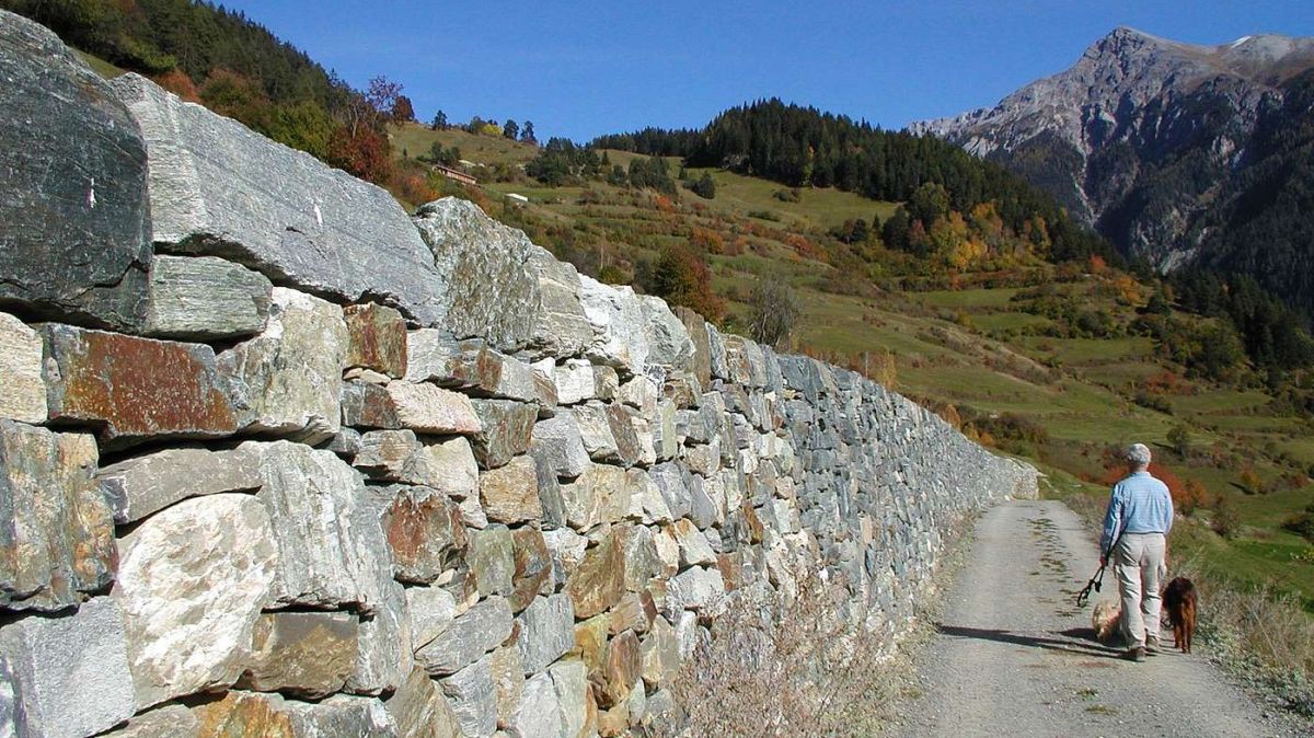 Per promouver la cutivaziun dal gran süllas terrassas a Ramosch ha la PTE organisà la refacziun da divers dals mürs sechs (fotografia: Flurin Andry).