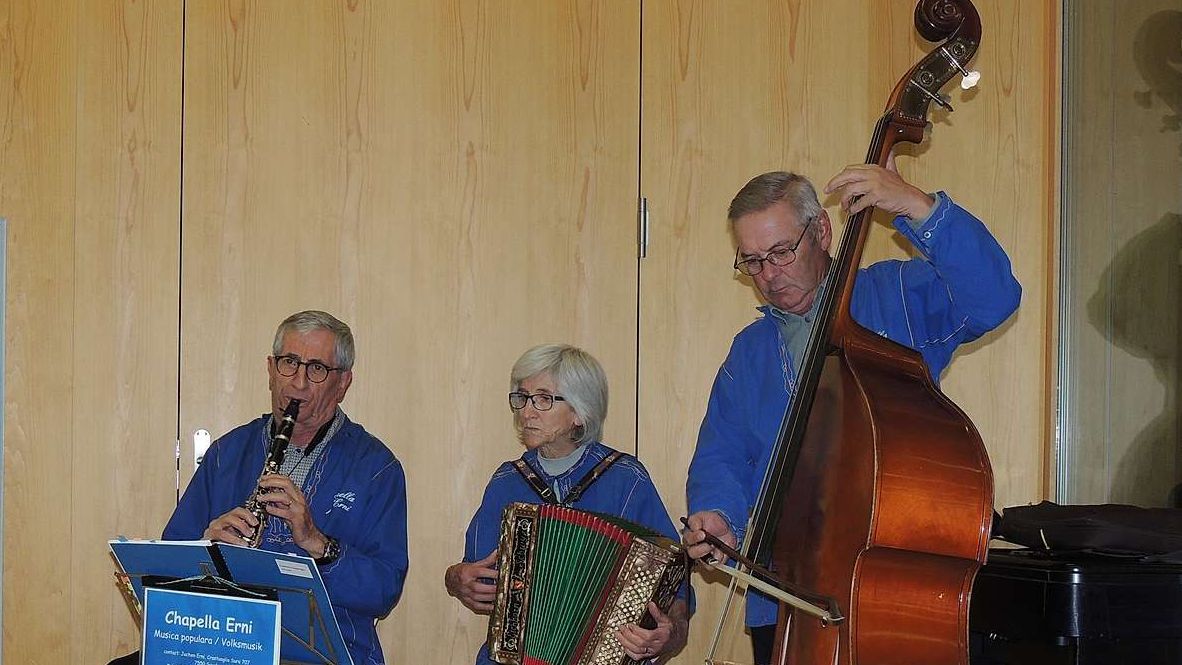Jachen Erni da Scuol ha referi davart la musica populara illa sala polivalenta da la Chasa Puntota a Scuol. Il referat es gnü accumpagnà da musica populara da la Chapella Erni.