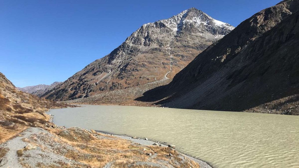Der Ausflug zum Lej da Vadret ist wie geschaffen für eine kombinierte Bike-/Wandertour. Durch die goldenen Lärchenwälder geht es zuerst zum Hotel Restaurant Roseg Gletscher (zurzeit geschlossen) und dann weiter auf dem Weg über offenes Gelände bis zum Fuss der Moräne. Vor dort ist der Weg nicht mehr weit auf das Hochplateau, in dem der rund 1,5 Kilometer lange und 300 Meter breite Lej da Vadret liegt. Von hier führt der Bergweg weiter zur Chamanna Coaz, die ebenfalls Saisonende hat. Aber auch am See lässt sich der Blick zu den Gipfel Capütschin, Glüschaint und Sella geniessen oder talauswärts zum Piz Tschierva. Auch wenn auf dieser Höhe die Wälder fehlen: Das goldene Licht lässt ebenfalls Herbststimmung aufkommen.