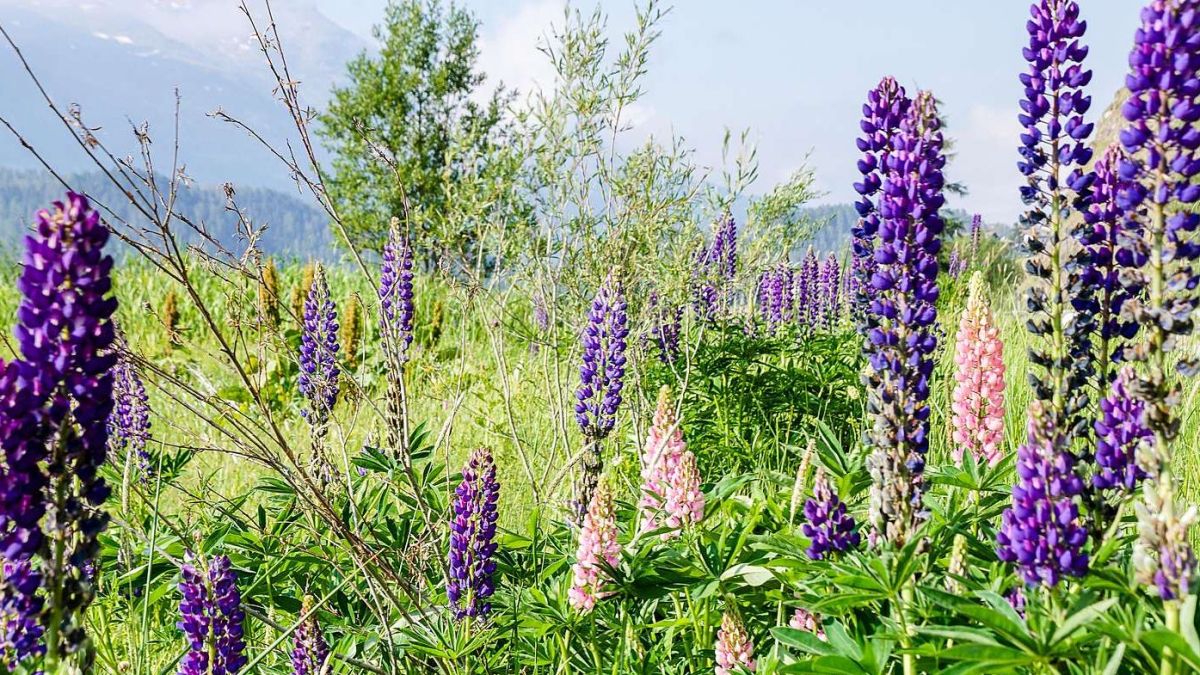 Schön anzusehender invasiver Neophyt: Vielblättrige Lupine zwischen Samedan und Celerina. Foto: Jon Duschletta