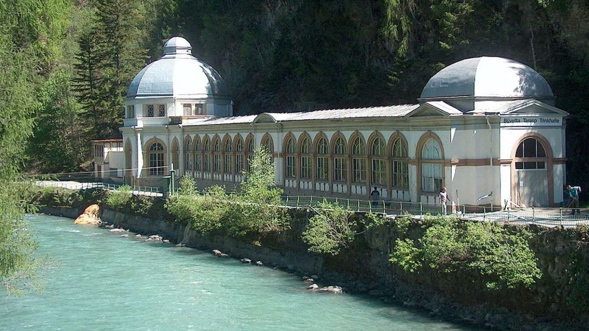 La Büvetta a Nairs cun sias funtanas d’aua minerala vala sco la chüna dal turissem illa regiun (fotografia: Benedict Stecher).