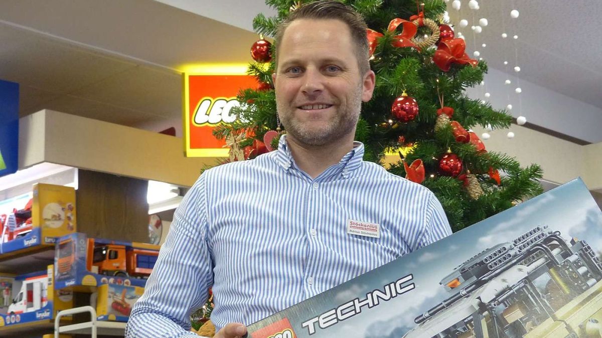 Il butier Adrian Stöckenius cun ün dals hits pro’ls regals da Nadal fingià daspö lönch, ils Legos (fotografia: Flurin Andry).