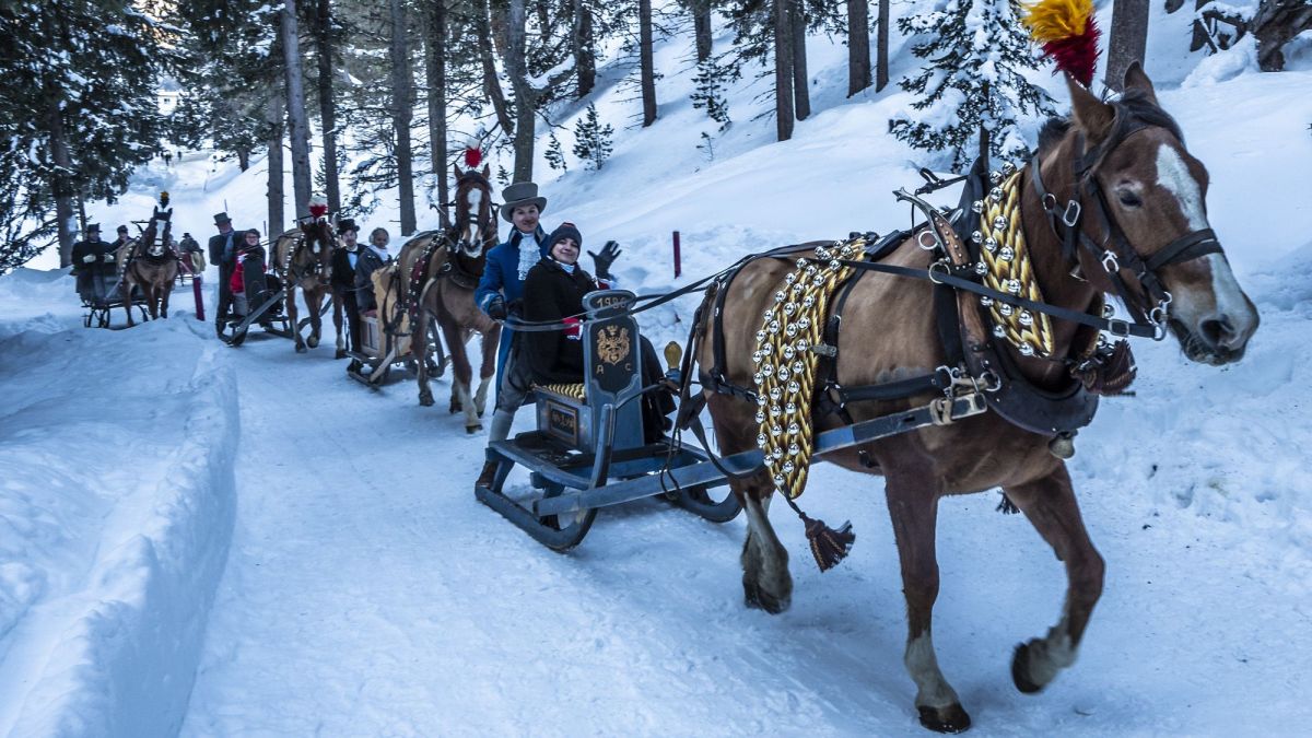 Alljährlich finden im Januar und Februar im Engadin die Schlittedas statt. Vergangenen Samstag nahmen in St. Moritz 14 Gespanne an der traditionellen Schlittenfahrt teil. Ihre Fahrt nach Silvaplana lockte viele Schaulustige an.