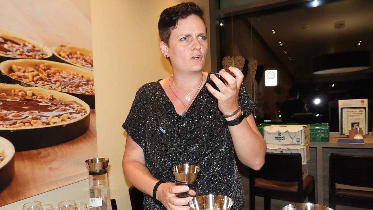 Davo il referat da Rolf Weingartner ha gnü lö üna degustaziun d’aua cun Claudia Vontobel, la sommelièra d’aua (fotografia: Annatina Filli).