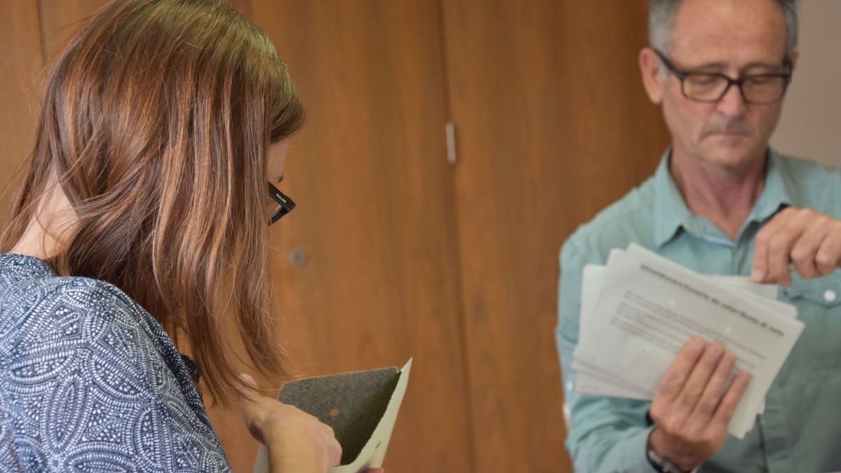 Karin Stecher ed Andri Florineth han l'incumbenza da drivir la bustas inoltradas. (fotografia: Jan Schlatter)