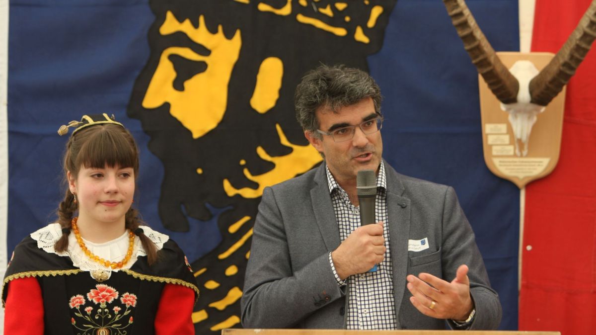 Il cusglier guvernativ Marcus Caduff ha tgnü il pled festiv al Tir da Chalavaina. (fotografia: mad)