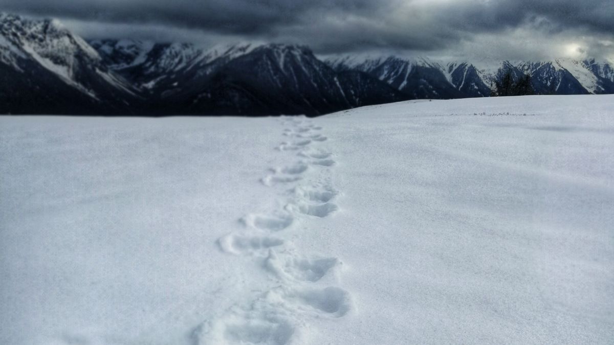 Il stizi d’ün uors illa naiv i’ls contuorns da la Motta Naluns. (fotografia: Jachen Andri Florineth)