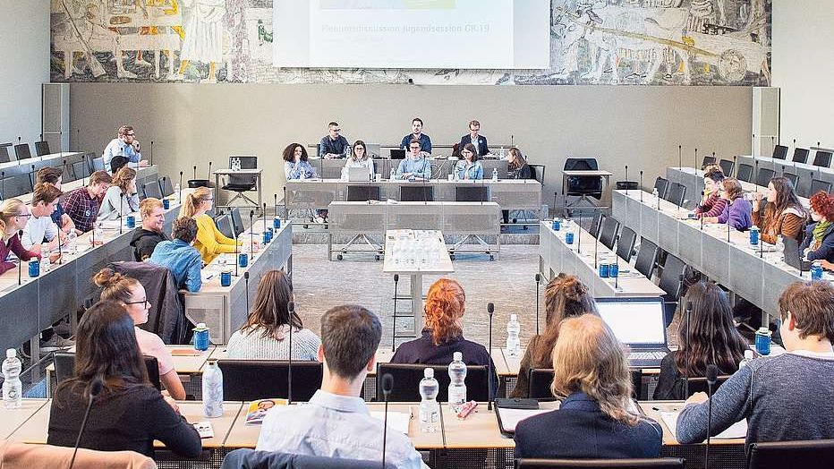 La sessiun da giuventüna illa sala dal Grond cussagl a Cuoira. fotografia: mad