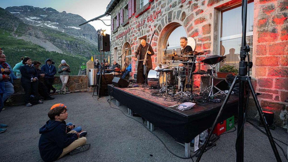 Premiere am Festival da Jazz:Am Dienstagabend bespielten die Schweizer Klangmeister Mich Gerber und Andi Pupato erstmals die Alp Grüm. Erlebnis Bahnreise, Landschaft und Vollmondspektakel inklusive.