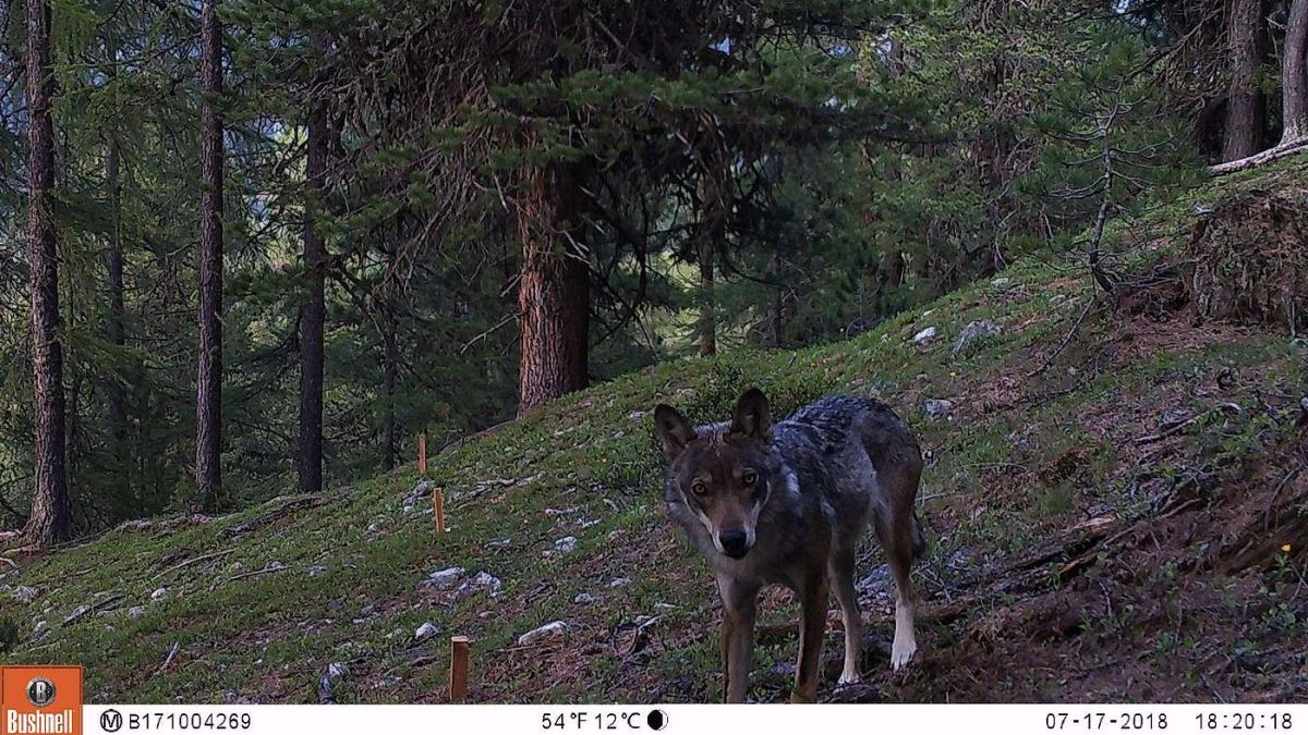 Üna trapla da fotografia ha documentà la preschentscha d’ün luf i’l Parc Naziunal Svizzer (fotografia: Parc Naziunal Svizzer).