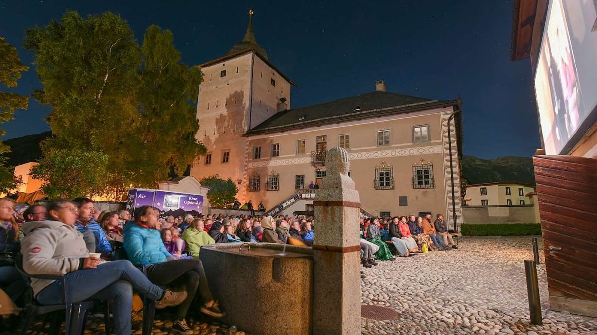 La cuort dal Chastè Planta Wildenberg a Zernez s’ha transmüdada per ses dis sco center dal Kino-Openair dal Parc Naziunal Svizzer (fotografia: Hans Lozza/PNS).
