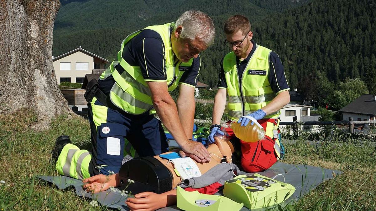 Ils samaritans exerciteschan regularmaing l’adöver dal defibrillatur extern. (fotografia: Ursula Grimbichler)