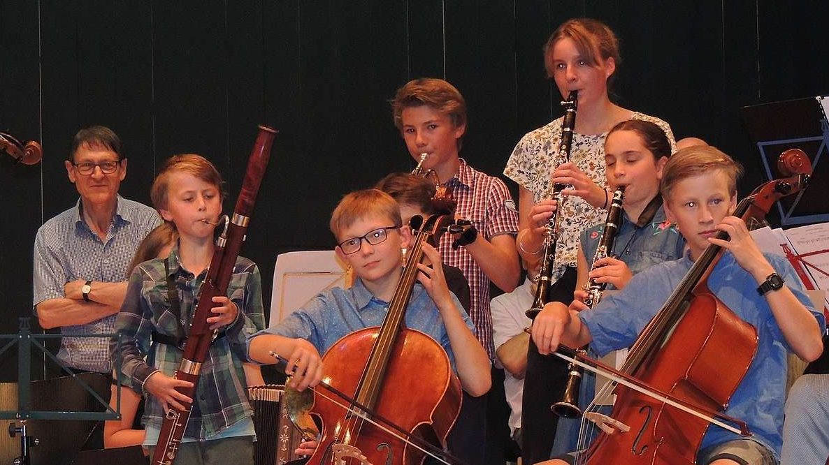 Eir la giuventüna dal lavuratori dals Fränzlis s’ha preschantada in üna fuormaziun cun differents instrumaints (fotografia: Benedict Stecher).