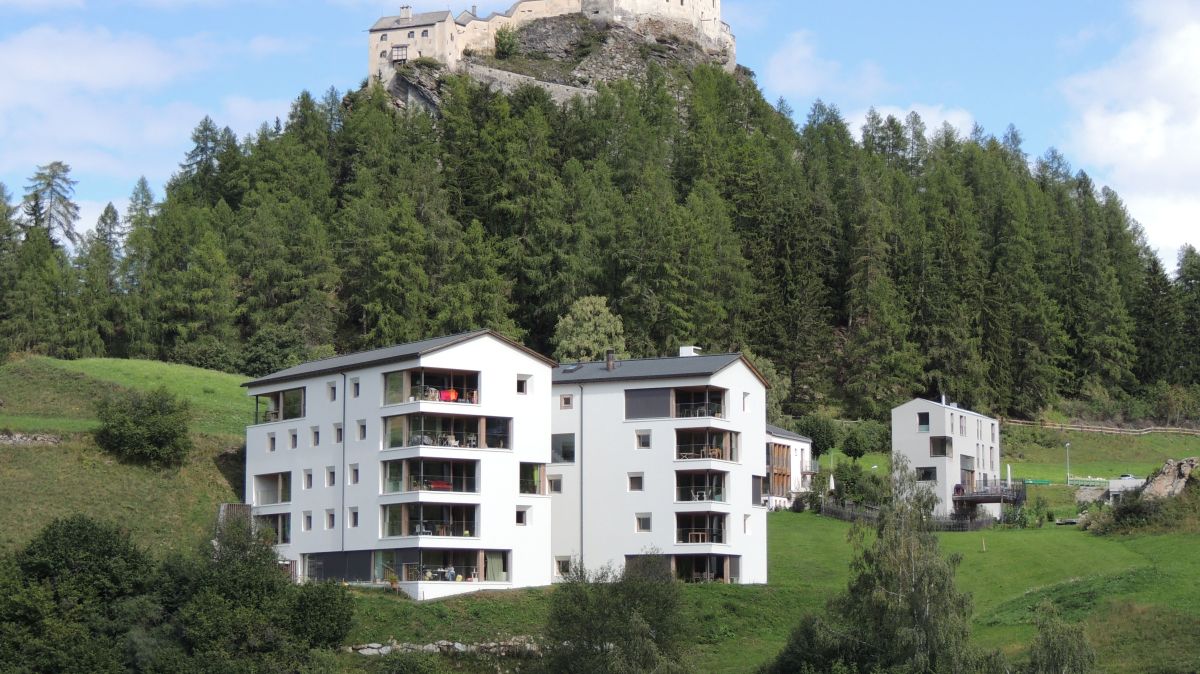 Ils duos edifizis da la cooperativa d’abitaziuns Curtin a Tarasp sun bain occupats. (fotografia: Benedict Stecher)