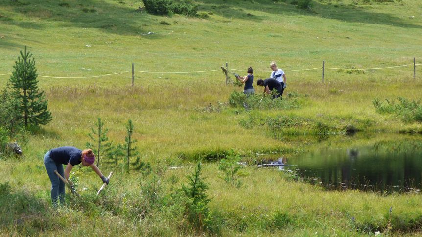 Ils voluntaris dal chomp da lavur dal SCI han güdà a rumir frus-chaglia. (fotografia: Thomas Kohl)