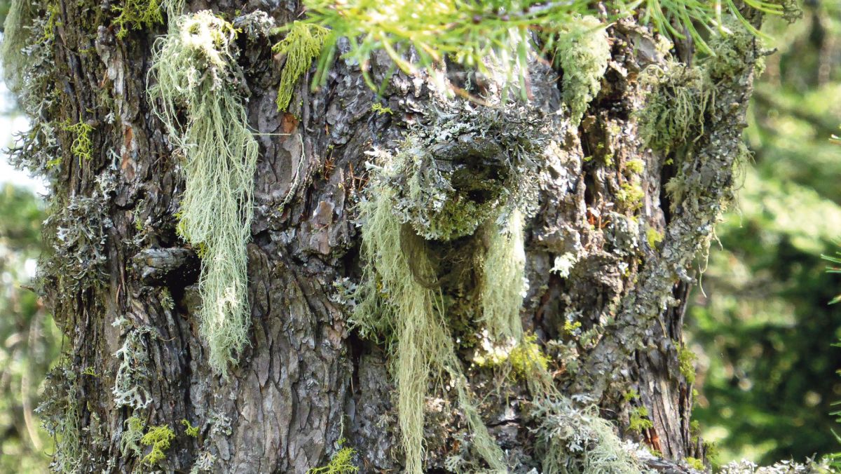 Typischer Bewuchs der Lärchen mit Bart und Strauchflechten. Insbesondere Bartflechten zeugen von sauberer Luft. Foto: Gregor Kaufmann