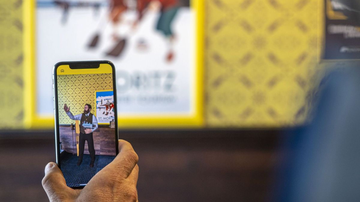 Seit Donnerstag werden Gäste bei der Talstation der Standseilbahn Chantarella von Johannes Badrutt in Empfang genommen. Natürlich nicht leibhaftig, sondern digital in einer «Augmented Reality App».