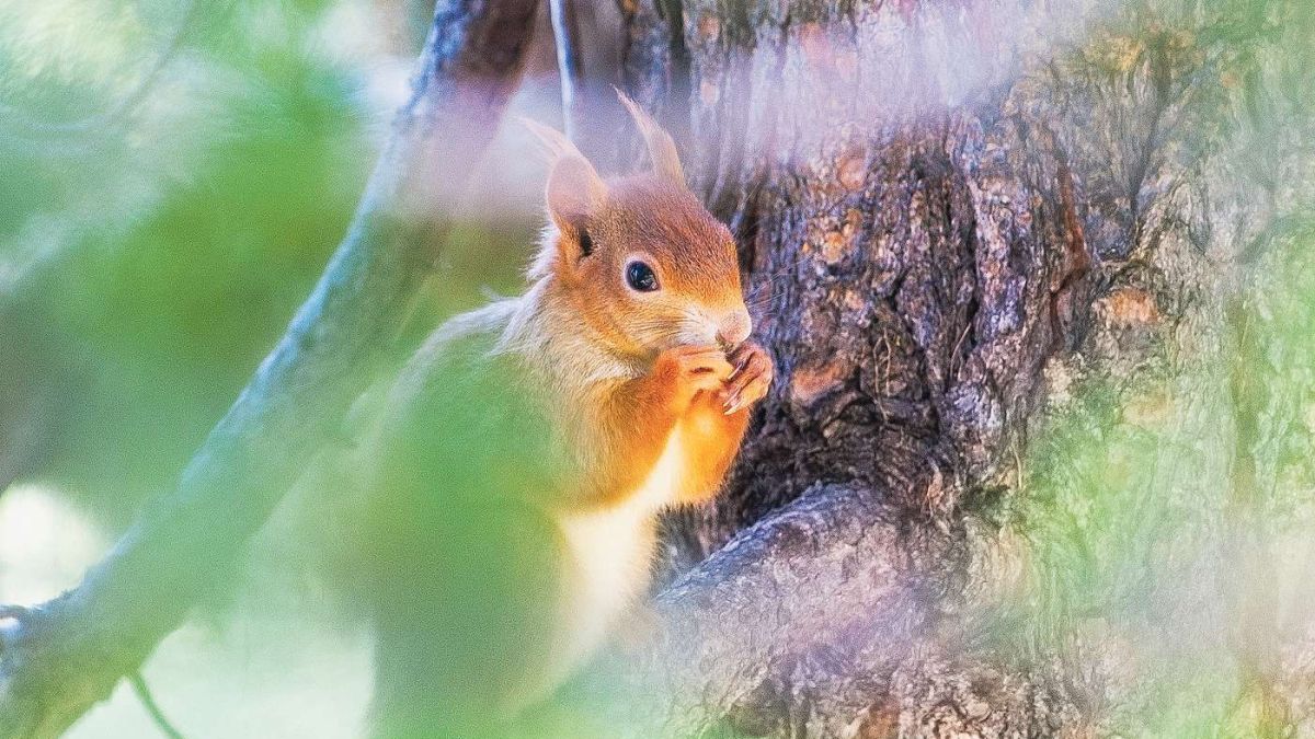 Alch as muainta sülla tschima verda dal bös-ch. Cun verer plü precis as vezza chi cumpara üna cua spessa. Ün squilat siglia da rom a rom in tschercha da pavel. Sainza fadia rampigna’l sü e giò dals truonchs ...