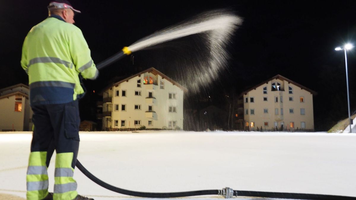 Wer in Sils Schlittschuh laufen will, muss sich noch ein wenig gedulden. Die Bereitstellung eines Natureisfeldes bei hohen Temperaturen ist Geduldsarbeit.